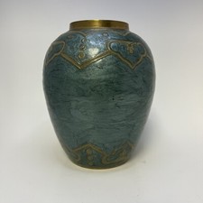 Vintage Large Mid Century Chinese / Asian Pewter & Brass Overlay Vase / Urn