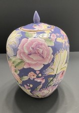 Vintage Large Chinoiserie Rose Flower Ikebana Ginger Jar Urn with Lid