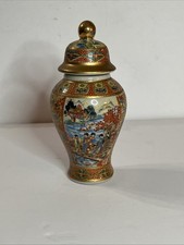 VTG Hand-Painted Satsuma Ginger Jar/Urn 8" w/Lid See Pics