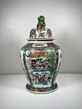 Large Chinese Rose Medallion Porcelain Temple Jar Urn Ginger Jar Gilt Foo Dog