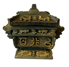 VTG Antique 8" Tall Metal Container Urn Vessel Jar Chinese Art Dragons
