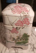 Antique Hand Painted Stacking Porcelain Japanese Danju Jubako Container Blossoms