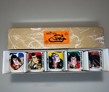 Vintage Japanese Kabuki Actor Mino Ware Porcelain Teacup Set Sale Shot Glass