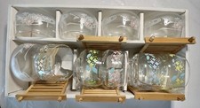 Vintage Toyo Glass Japan Saika Floral Cold Tea Cup Set with Bamboo Coasters