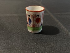 Vintage Hand painted Geisha Girl Porcelain Sake Cup Shot Glass Old Toothpick