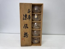 Y9932 YUNOMI glass teacup set of 5 box Japan antique sencha tea cup tableware