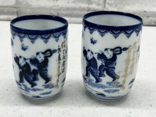 Blue and White Japanese Tea Glass Set Lot If 2 Vintage Marked