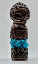 Antique Tibetan seal silver finish w/t hand Yak bone and turquoise stone set
