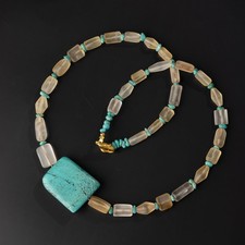 Old Ancient Natural Crystal Bead with Antique Turquoise Bead Necklace