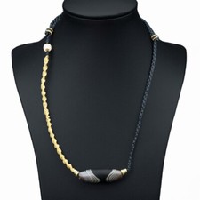Vintage Tibetan DZI Bead Necklace Antique Black And White Protection