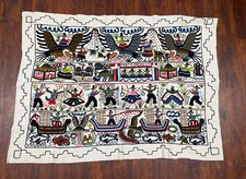 Antique Peru Embroidered Peruvian Rug. Marriage Blanket Handmade! WOW!