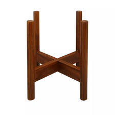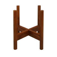 Mid-Century Modern Wood Plant Display Stand Indoor Cross-Legged Antique Mahogany