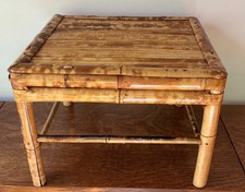 Antique Burnt Bamboo Plant Stand Rectangular Display Stool Tortoise 8"x6”x18"