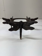 Cast Iron Dragonfly Round Antique Style Brown Plant Caddy Weatherproof 7"