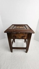 Antique Hand Made Carved Engraved Wood Small 3 Leg Round Table Plant Stand