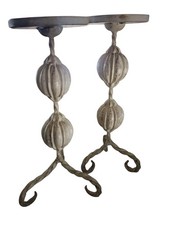 Antique Metal Candle or Plant Stands Pair, Twisted Legs, Patina Finish.