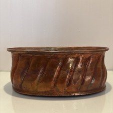 Antique Vintage Swirled Copper Planter Bowl 9x6x3.5 Inches
