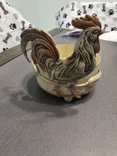 Antique Rustic Farmhouse Rooster Plant Stand 6.5" Chicken Indoor Sand Decor