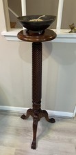 Vintage Solid Mahogany Barley Twist Carved Wood Plant Stand 44” Carwed Claws