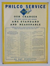Rare Vtg Philco Radio Service Price Chart TOC Tin Advertising Permanent Sign Co