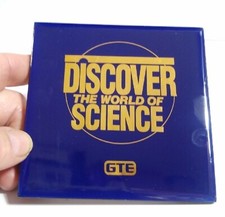 Vintage GTE Discover the World of Science COASTER Enameled Advertising Sign Old