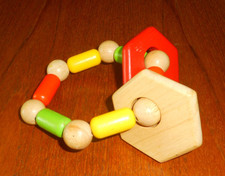 Vintage "Wonderworld" Baby Wooden Teether Toy Ring- Excellent