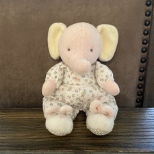 Vintage Prestige Toy Corp Plush Baby Elephant Rattle Bunny Slippers Pink Floral