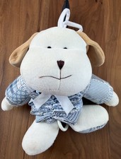Vtg First Peek Puppy Dog Blue White Plush Musical Cherokee Baby Crib Pull WORKS