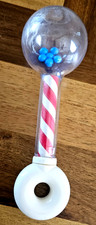Vintage Johnson & Johnson Rattle Striped Red &White Baby Toy Parent Magazine