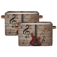 Storage Basket Vintage Music Guitar Storage Cube Box Durable Canvas Collapsib...