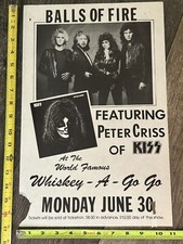 Kiss Concert Poster PETER CRISS Balls Of Fire Whiskey A Go Go 1986 Vintage Kiss