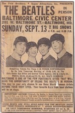 Vintage Beatles Concert Poster 1964 Washington, D.C. FIRST US CONCERT 11X17 COPY