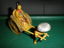 Vintage Celluloid Geisha In Japanese Rickshaw 3.75" Toy Figure Hand Painted