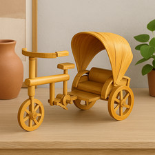 Vintage Bamboo Rickshaw Model | Handcrafted Decorative Tricycle Cart Collectible