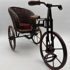 Antique Large Metal Brass Wicker Wood Vintage Tricycle Rickshaw Doll Plant Stand