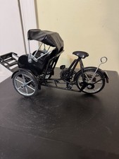 Vtg Metal Rickshaw Replica 3-Wheel Bicycle Street Black Cart Vietnam Chain Model