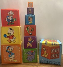 Vintage Disney Stacking Blocks Toy Lot – 9 of 10 – Made in Hong Kong w/ Box