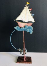 Vintage Folk Art Metal Sailboat Pendulum Balance Toy 18.25"