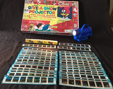 1961 Kenner Give-A-Show Projector Color Slide Show-Large Set W/ 32 Strips-Works!