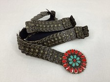 Haute Hippie Navajo Style Antique Silver Brown Stone Concho Belt up to 41"…