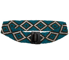 Bohemian Beaded Stretch Belt OS Brass White & Turquoise Colored Wood Buckle