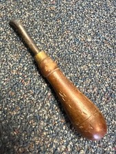 Handheld Brass Collar Dial Buffer Tool Primitive Wood Handle Antique Old