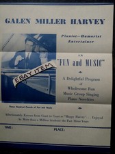 C 1940s ADVERTISING FLYER POSTER Galen Miller HAPPY HARVEY piano player PIANIST