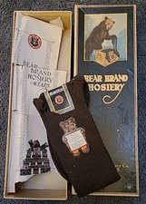 Vtg BEAR BRAND HOSIERY Box & 1 Pair Socks with Label dates from 1915 Antique
