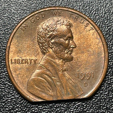 1991-D ERROR Lincoln Memorial Cent ** Clipped Planchet