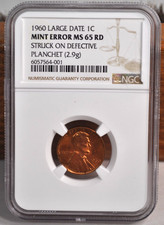 RARE ERROR 1960 Large Date Lincoln Cent NGC MS-65 Red Planchet Defect