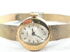 Vintage TIMEX Womens Gold Tone Watch Oval Dial Stretch Band Classic Mid Century