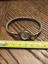 Vintage TIMEX Womens Gold Tone Watch Oval Dial Stretch Band Classic Mid Century