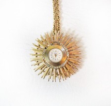 Vintage Mid Century MCM Modernist Coro Sunburst Pendant Brooch Watch - Runs Well