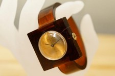 MCM Mid Century Modern Jewelry 17J Watch GENEVA Brown Lucite Square Face